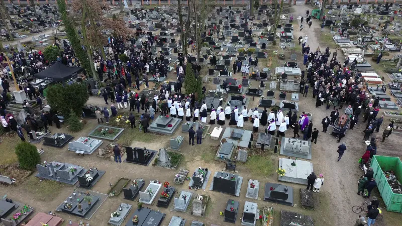 Ceremonia pogrzebowa na starym cmentarzu rozpoczęła się około godz. 12.20, po przewiezieniu trumny z kościoła. Uczestniczyło w niej kilkudziesięciu księży, a sam pogrzeb prowadził ks. abp. Stanisława Gądeckiego. Przewodniczył on także pogrzebowej mszy świętej.